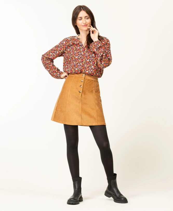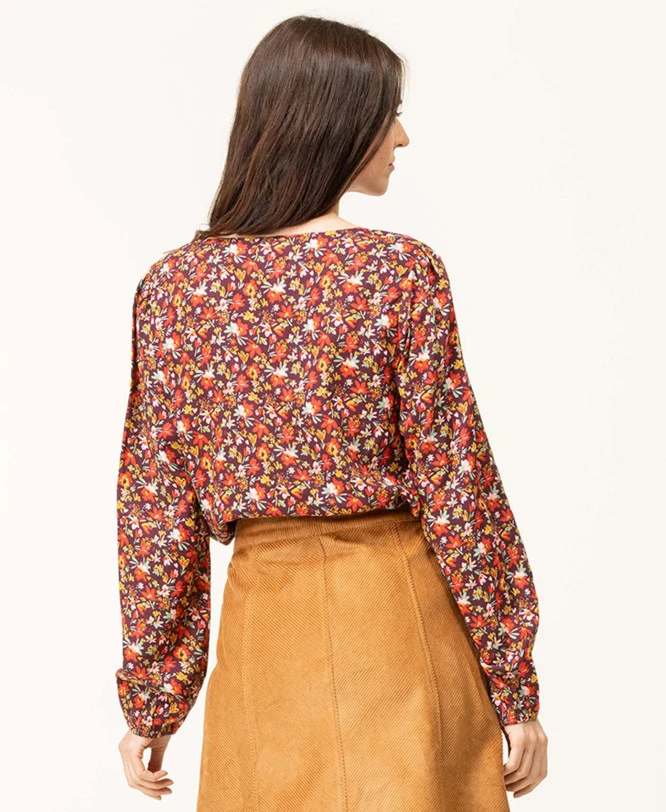 - Imprimé Unique : Démarquez-vous avec un motif floral exclusif aux teintes riches, idéal pour dynamiser vos basiques.