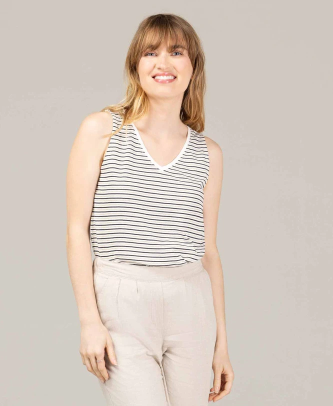 - Motif : Rayures bicolores intemporelles