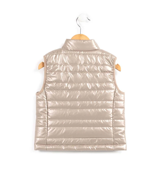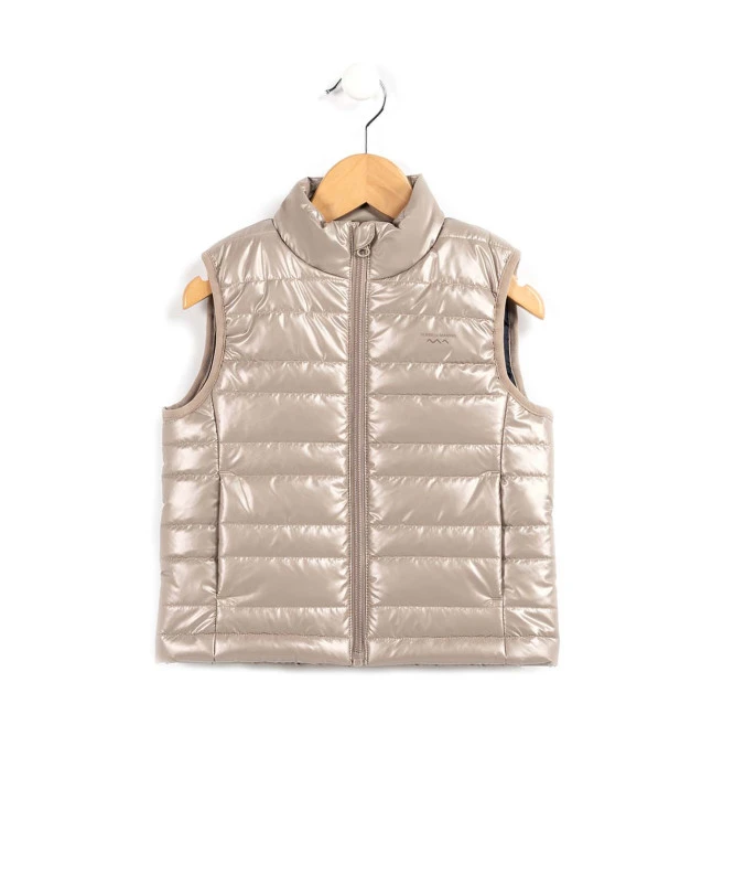 Gardez votre enfant bien au chaud tout en affirmant son style avec cette doudoune sans manches dorée. Idéale pour les journées fraîches de la mi-saison, elle offre une liberté de mouvement totale pour toutes les aventures en plein air, tout en ajoutant une finition irisée tendance à chaque tenue.