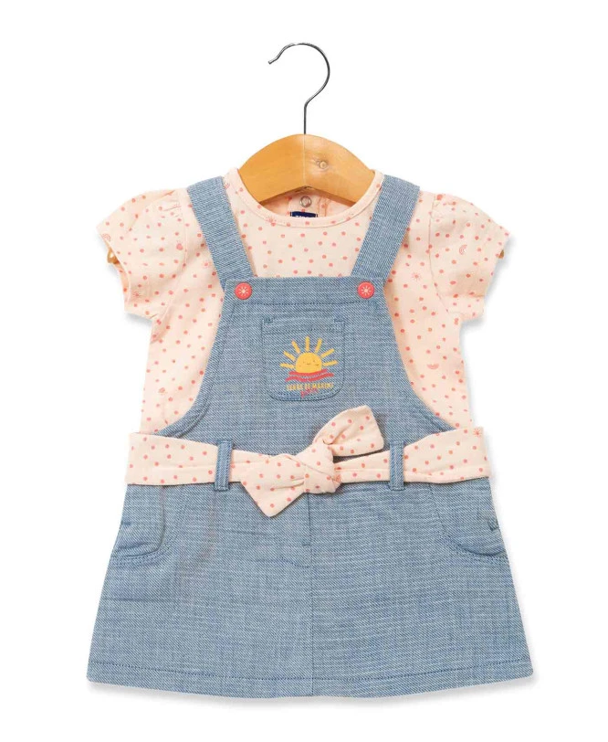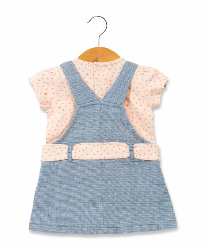 - Composants : 1 Robe salopette unie et 1 T-shirt à manches courtes avec imprimé exclusif.