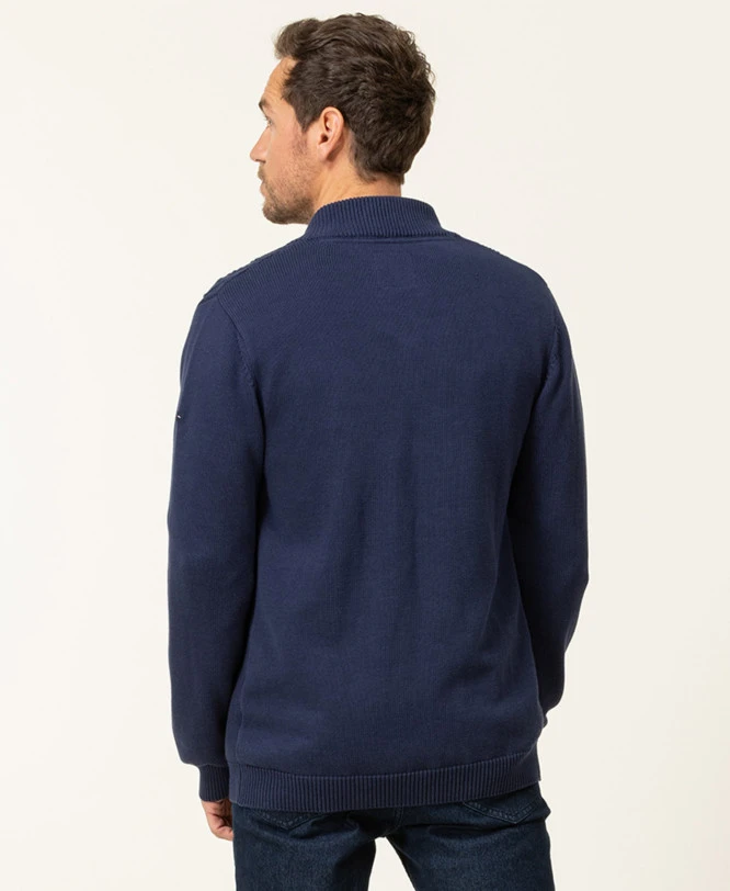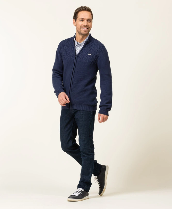 Affrontez la fraîcheur avec style grâce au gilet Gorsa. Conçu pour l’homme moderne qui ne veut pas choisir entre confort et esthétique, ce gilet en tricot bleu marine apporte une solution immédiate à vos besoins de superposition. Que ce soit pour une journée de travail ou une sortie en week-end, sa maille travaillée garantit une silhouette structurée tout en vous enveloppant de douceur.