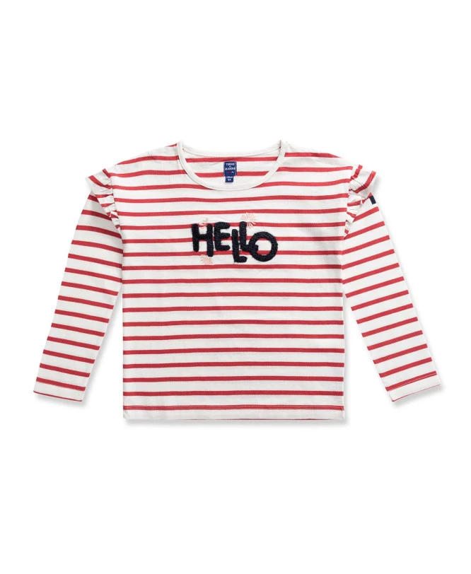Add a touch of playful elegance to your child’s wardrobe with this vibrant striped long-sleeve marinière. Designed for active girls who love to stand out, this tee combines the classic charm of Breton stripes with modern, stylish details that solve the daily dilemma of finding an outfit that is both chic and comfortable.