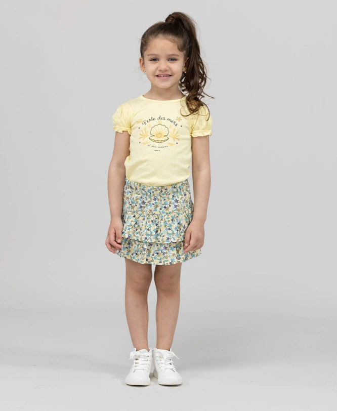 Offrez à votre enfant une allure à la fois chic et décontractée avec cette jupe courte à volants. Conçue pour accompagner tous les mouvements de la journée, elle combine un style dynamique à un confort absolu, idéal pour les sorties ensoleillées ou les moments de jeu.