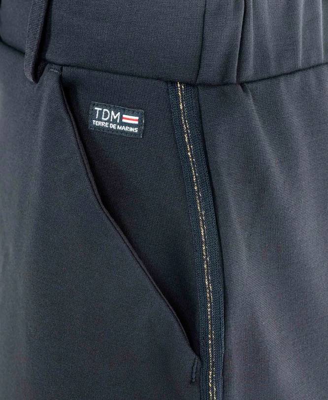 - Style Polyvalent : Sa couleur marine unie permet de l’associer facilement avec un t-shirt décontracté ou une blouse plus habillée.