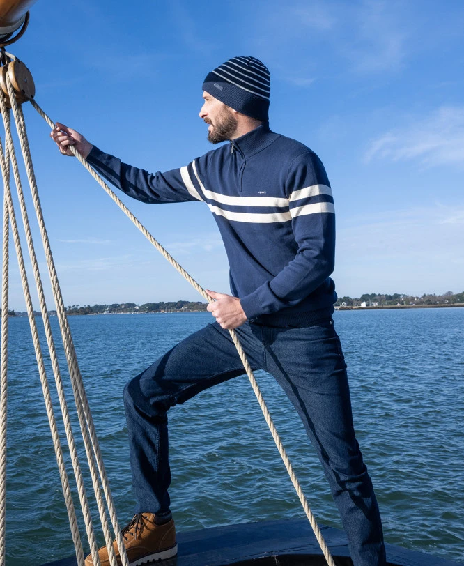 Célébrez trois décennies de savoir-faire avec le pull Koritage Indigo. Ce pull à col camionneur incarne l’équilibre parfait entre tradition maritime et modernité. Conçu pour l’homme en quête de confort sans compromis sur le style, sa teinte profonde et sa texture douce en font une pièce maîtresse de votre vestiaire saisonnier.