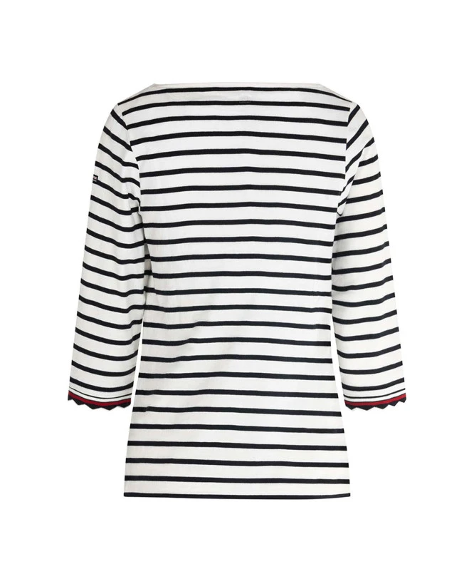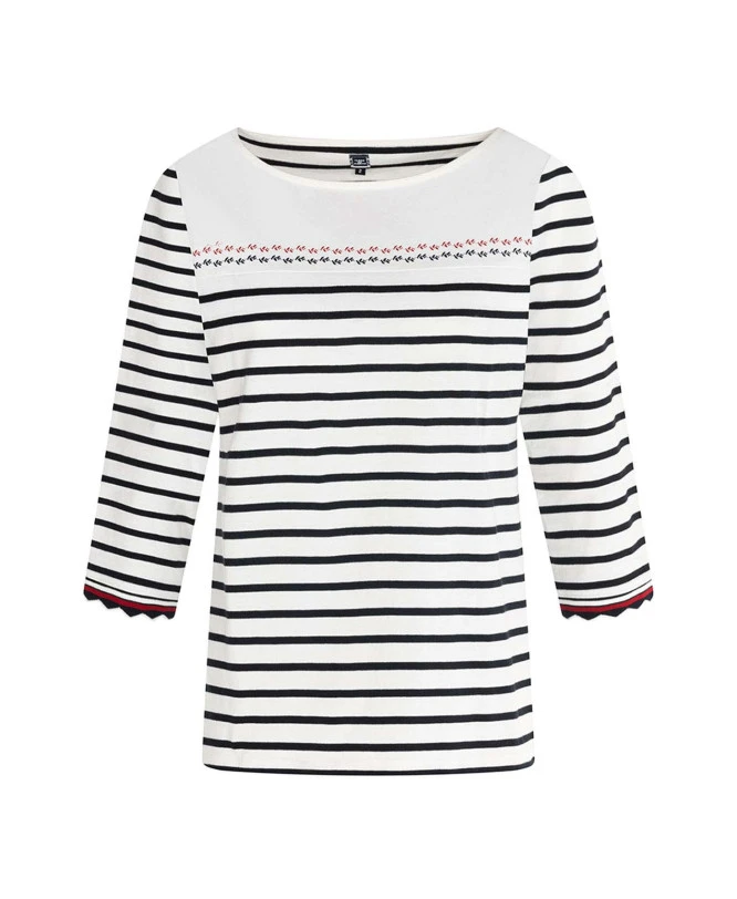 - Coloris : Fond blanc, rayures marine et accents rouges