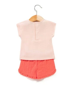 Ensemble T-shirt Imprimé & Short Gaze de Coton EFARIDE – Corail