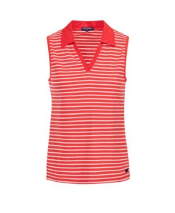 Affirmez votre style avec ce polo sans manches pour femme issu de la collection Terre de Marins. Véritable icône du vestiaire sportswear-chic, ce modèle revisite les rayures marines authentiques dans un coloris rouge éclatant et blanc. Sa coupe sans manches et son col travaillé en font la pièce idéale pour une silhouette élégante et décontractée lors des journées ensoleillées.