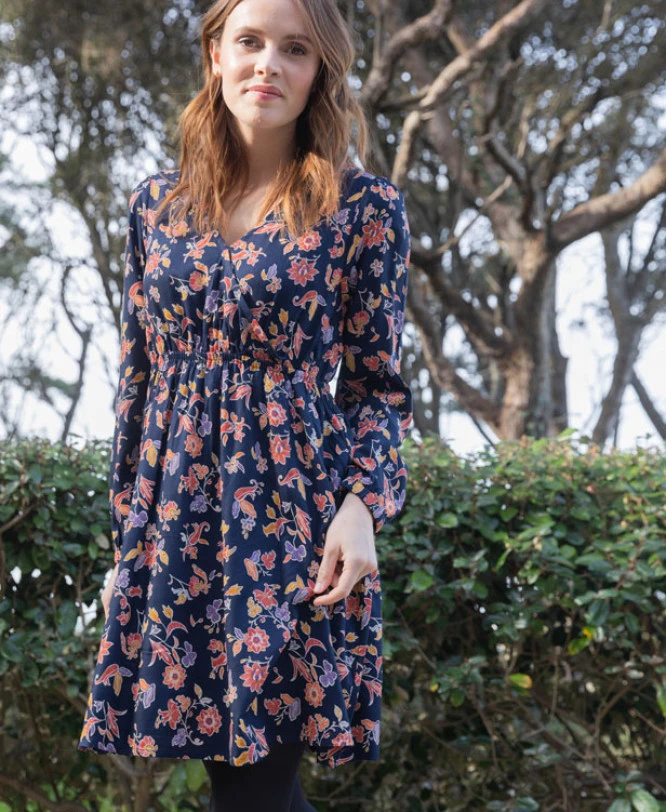 - Fluidité et Légèreté : Confectionnée à partir d’une matière à base de viscose, cette robe offre un tombé impeccable et une sensation de douceur aérienne sur la peau.