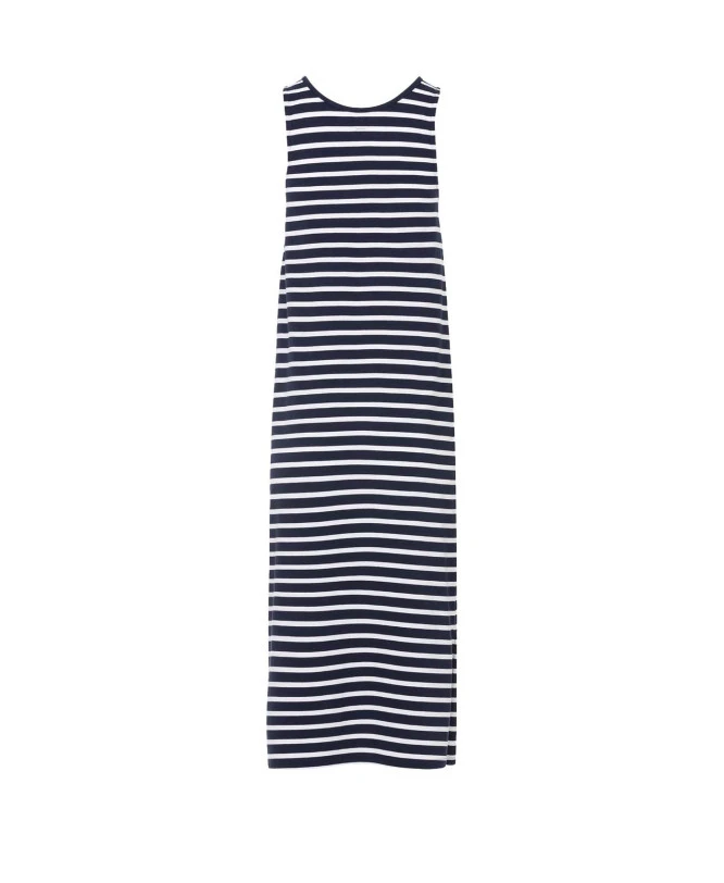 Vous recherchez une tenue qui allie confort absolu et style intemporel ? Cette robe longue rayée est la solution idéale pour vos sorties estivales ou vos moments de détente. Sa coupe fluide et son design inspiré de l’univers marin vous assurent un look soigné sans effort, tout en respectant votre peau grâce à sa certification écologique de haute qualité.