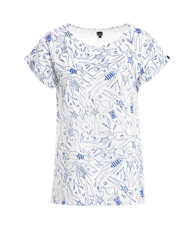 Vous en avez assez des hauts basiques sans personnalité ? Notre t-shirt femme à imprimé nageuses est la solution idéale pour apporter une touche d’originalité et de fraîcheur à votre garde-robe quotidienne. Conçu pour allier confort et esthétique moderne, ce modèle transforme un essentiel du quotidien en une pièce forte de votre tenue.