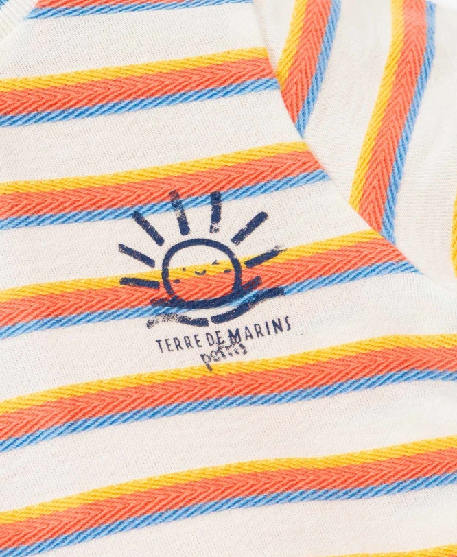 Offrez à votre petit aventurier un look à la fois joyeux et élégant pour ses premières découvertes. Ce t-shirt rayé pour bébé garçon allie parfaitement style marin et bien-être, garantissant une liberté de mouvement totale tout au long de la journée.